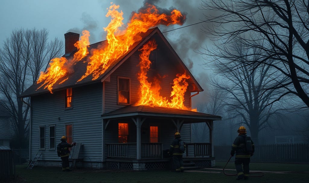 Not Christianity. Christianity teaches that the situation is much, much worse than “a little bit” of anything can fix. And I am much, much worse. Christianity teaches me that I can never be good enough, never pray hard enough, never be saintly enough to compel the saving hand of God to move. Everything is on fire.